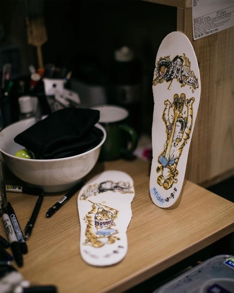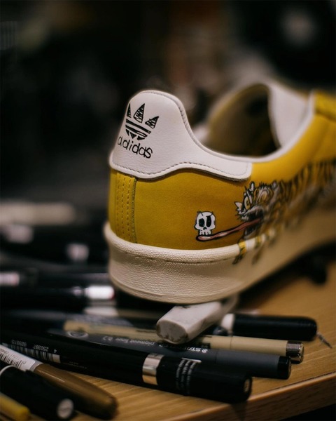 Die Zusammenarbeit zwischen Kasina und dem Illustrator zeigt sich in einem goldfarbenen, schwarz-weißen Obermaterial, das durch aufwendige Malereien von Tigern und einer weiblichen Heldin sowohl auf dem Obermaterial als auch auf der Innensohle ergänzt wird. Noch erstaunlicher ist, dass die Fersenlasche in den Hintergrund tritt und das klassische Trefoil die Hauptrolle bei dieser Zusammenarbeit spielt. Kasina verdient ein großes Lob für ein solch herausragendes Projekt! Du willst den Sneaker auch haben? Dann verpasse die Veröffentlichung am 17. März nicht. Klick dafür auf den folgenden Link.