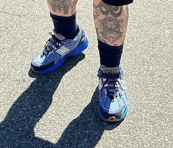 Action Bronson gibt zum ersten Mal einen detaillierten Einblick in seine bevorstehende Zusammenarbeit mit New Balance und dem 1906R. Der größte Teil ist in Blau gehalten, während lilafarbene Laces die Sneaker schnüren.