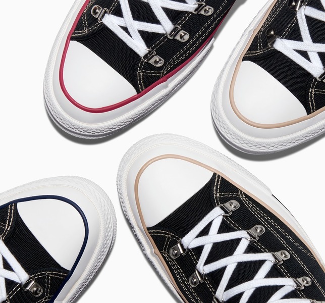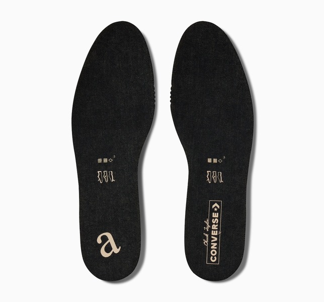 Der pgLang x Converse Chuck 70 kommt in einem eleganten Schwarz mit zwei verschiedenen Varianten. Aber die wahre Magie steckt in den Details. Bei genauerem Hinsehen werden dir die feinen Unterschiede auffallen; ein Paar hat Converse Navy Nadelstreifen auf dem linken Schuh und Irish Cream auf dem rechten, während das andere Paar diese Farben vertauscht und Rot durch Blau ersetzt. Und natürlich ist das pgLang-Flair überall auf diesen Sneakers zu sehen - Ösen im Wanderstil, asymmetrische Gummilackierung und Grafiken auf den Innen- und Außensohlen, die auf pgLangs Botschaft der Einheit durch Kunst anspielen. Der Drop kommt am 2. November bei Converse.