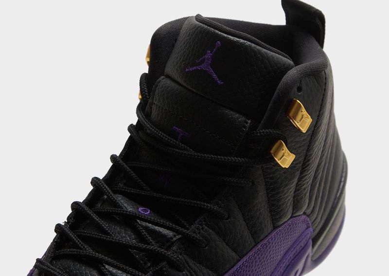 Schwarzes Glattleder mit lilafarbenen Details am Mudguard liefern einen auffälligen Look. Die goldenen Ösen und das ikonische Jumpman-Branding auf der Zunge verleihen dem Air Jordan 12 „Field Purple“ einen luxuriösen Touch.