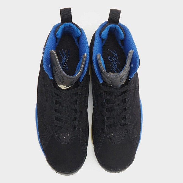 Obwohl die Silhouette von weitem einem Air Jordan 6 ähnelt, ist sie tatsächlich stark vom Air Jordan 7 und 8 inspiriert: Der Mittelfuß und die Zehenbox des AJ7 sind auf der Außenseite des Schuhs zu sehen, während ein mehrfarbiges Muster des AJ8 an der Ferse über der Air-Einheit zu sehen ist. Außerdem ist ein Muster des AJ7 unter der schwarzen, durchsichtigen Zunge zu sehen, und NIKE AIR an der Ferse rundet das MJ-geprüfte Design ab. Für jeden echten Fan von „His Airness“ bietet der Jordan MVP „Black Royal“ alle seine größten Designs in einem modernen Sneaker.