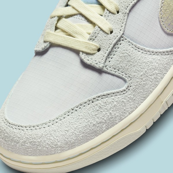 Die ungleichmäßig vergilbten, cremefarbenen Schnürsenkel und die Zwischensohle heben das Style-Niveau noch einmal an und bieten dank der grauen Gummi-Außensohle dennoch die dringend benötigte Traktion. Dieser neue Dunk Low wird in der nächsten Saison garantiert alle Blicke auf sich ziehen!