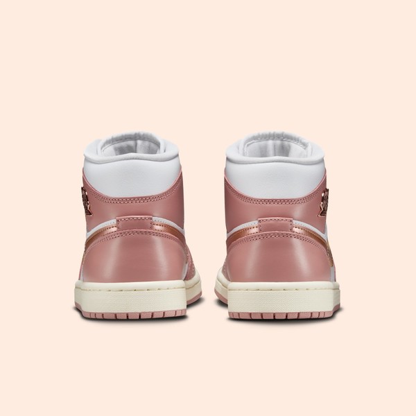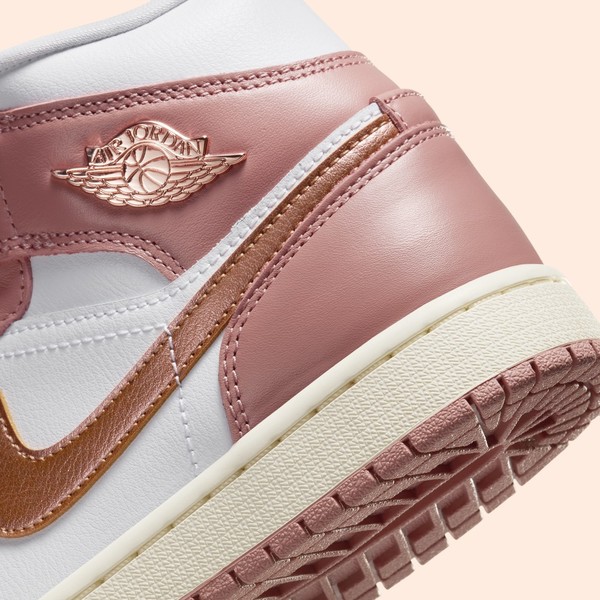 Während die Basis in schlichtem Weiß gehalten ist, sorgen die roségoldenen Akzente an der Seite und an der Ferse für einen atemberaubenden Kontrast. Die roten Applikationen an Zunge und Schuhspitze runden das Design perfekt ab. Damit die Schuhe auch wirklich im Rampenlicht stehen, gibt es eine weiße Zwischensohle. Wir können es kaum erwarten, bis sie endlich auf nike.com erhältlich sind. Klickt auf den oberen Link für weitere Details zum Release des Air Jordan 1 Mid SE „Red Stardust“.