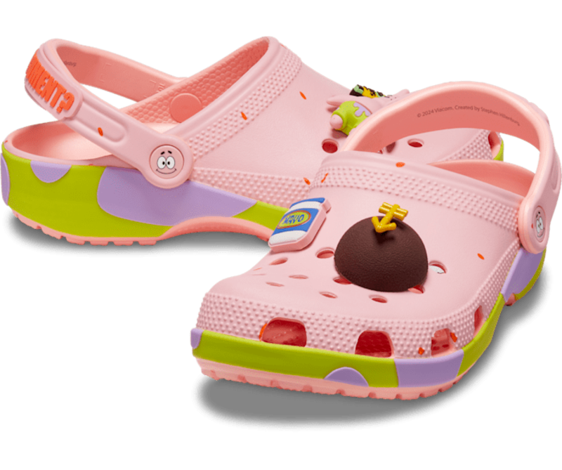 Die SpongeBob x Crocs Kollektion 2024 hat den Humor und die Farben von Bikini Bottom auf einige der beliebtesten Crocs-Modelle gebracht. Im Mittelpunkt standen mehrere farbenfrohe Classic Clogs, darunter ein gelber SpongeBob-Clog mit typischen Schwamm-Details, roter Krawatte und passenden Jibbitz-Charms. Auch Patrick Star hat ein eigenes Modell bekommen, das in Rosa- und Grüntönen gehalten ist und eine grüne Sohle hat. Dazu gibt es die typischen Accessoires, die auf seine verrückte Persönlichkeit anspielen.