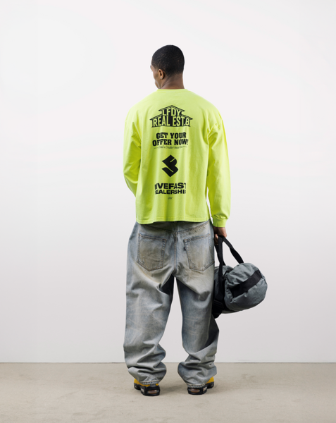 Inhaltlich kombiniert LFDY neue Designs mit bekannten Klassikern. Neben Hoodies, Sweatern, Zips und Tees sorgen vor allem auffällige Grafiken – inspiriert von Autohaus- und Immobilien-Ästhetik – für frische Vibes. Ergänzt wird das Line-up durch neue Colorways, Flannel Pieces und ein überarbeiteter College Hoodie.