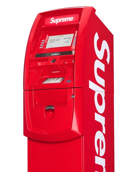 Zusätzlich sorgt ein weiteres Accessory für Aufmerksamkeit: eine auffällige Supreme ATM Machine, die online erscheinen soll und zu den ungewöhnlichsten Pieces der Season gehört.