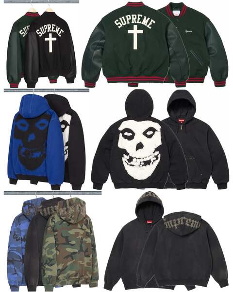Neben massiven Leder-Pieces, auffälligem Knitwear und sportlich dominierten Jerseys setzt Supreme auch dieses Jahr auf Popkultur-Referenzen, Ghostface-Motive und Retro-Vibes. Materialien wie ostrich-embossed leather oder Sea Island Cotton zeigen, dass Qualität eine immer größere Rolle spielt – auch wenn der rebellische Kern der Marke unangetastet bleibt.