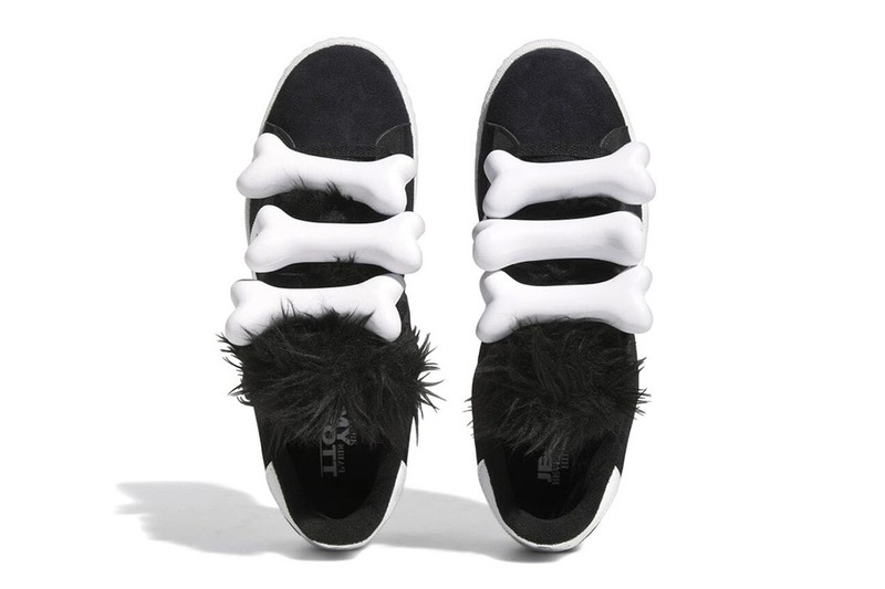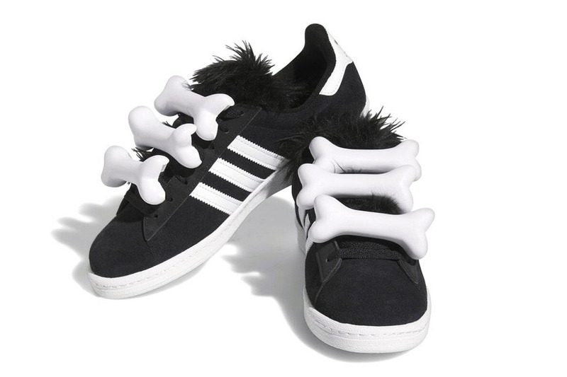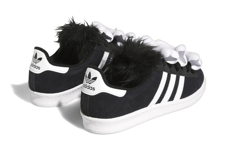 You can choose between the bolder of the two pairs — black and pink — or the more subtle "Core Black" and "Footwear White". Both are adorned with distinctive Three Stripes branding and oversized bone attachments on the tongue, with the black and pink pair featuring furry accessories and funky two-tone zebra stripes. Anyone who already loves Jeremy's work will enjoy having these Jeremy Scott x adidas Campus 80 "Bones" shoes in their collection! No release date has been set for us yet, but in other regions like Japan, the sneakers will drop on February 16th. Until then, check out the first pictures here.