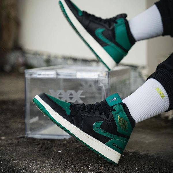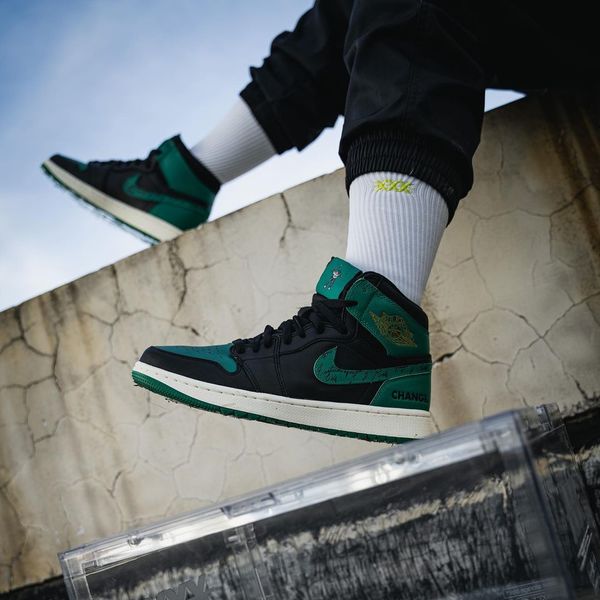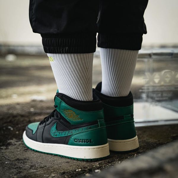 Visually, the new Eastside Golf x Air Jordan 1 High Golf "1961" evokes the landscapes of golf. The perforated upper features an appealing green colorway and is also found on the swooshes, heel and ankle flaps. An extravagant gold color adorns the Wings logos, while the word "Change" is stamped into the material in black lettering on the side heels. Instead of the traditional Nike tongue logo, the signature Eastside Golf symbol is printed on the tongue. Jet black laces, upper, and nylon tongue and overlays around the toe box round out the design. Jordan Brand has yet to confirm the sneakers, but rumor has it that they will be released on September 8.