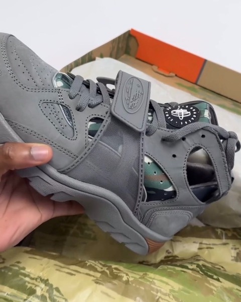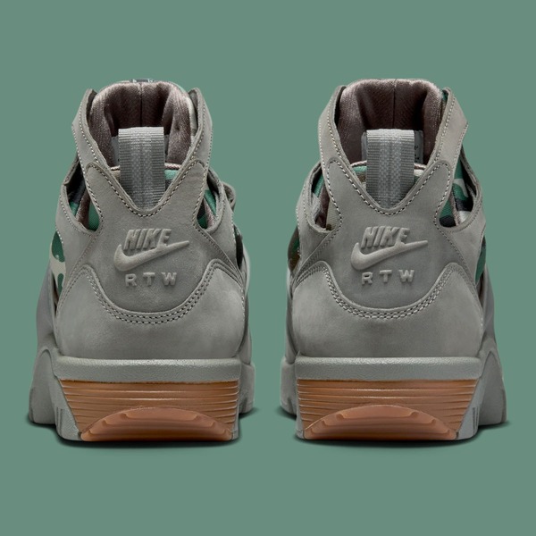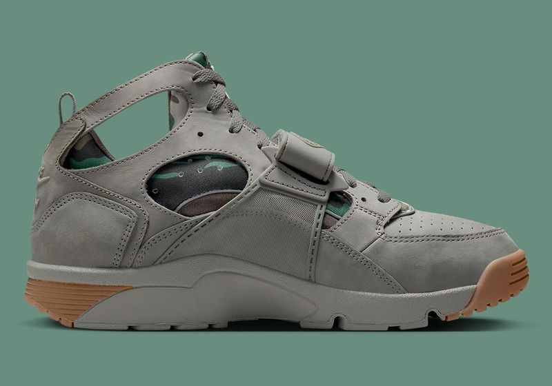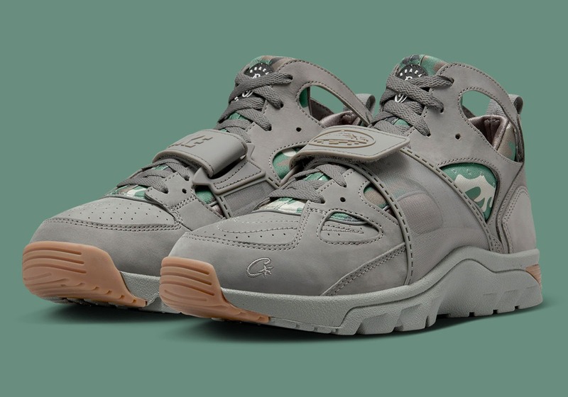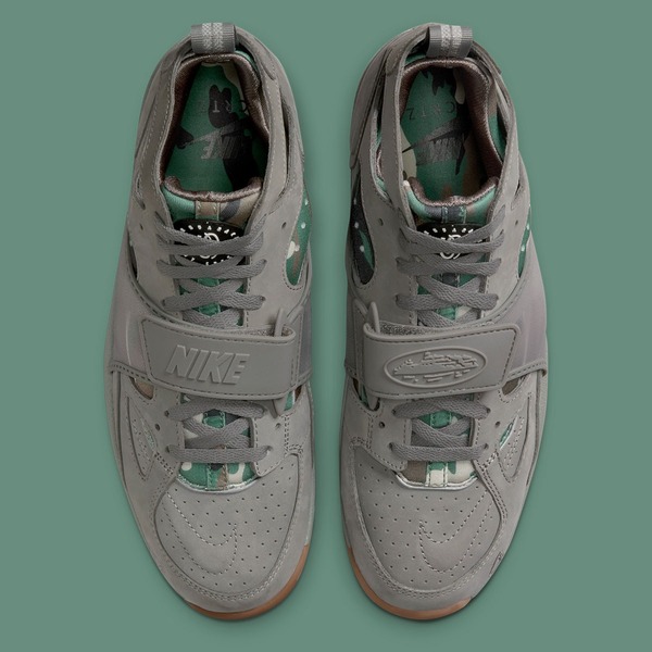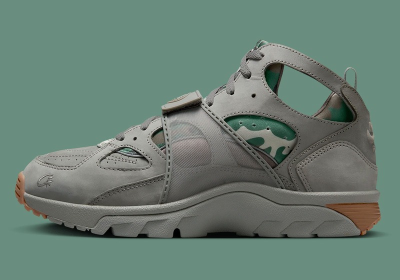The Corteiz x Nike Air Trainer Huarache collection will release for Christmas 2024, led by the ‘Flat Pewter’ colourway, alongside the ‘Light Bone’ and ‘Black’ editions. Each model features a grey suede upper, green camo neoprene accents and signature Corteiz branding such as the Alcatraz logo on the strap and ‘RTW’ on the heel. The sneakers will soon be available in men's sizes and will be offered on Nike.com and at selected retailers.