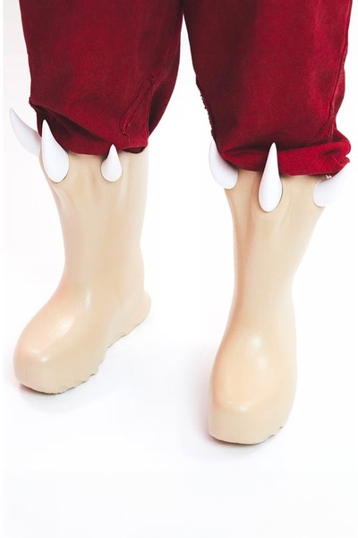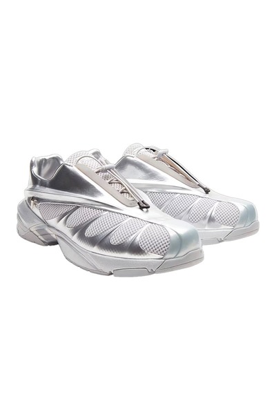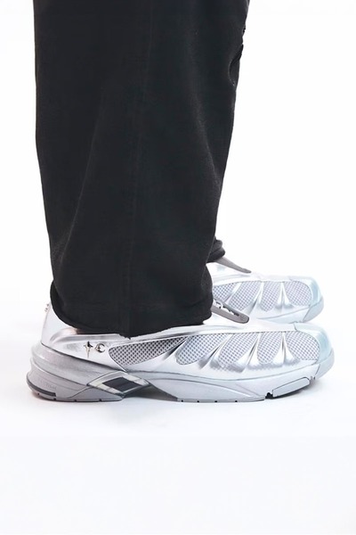 While the low-top Replica 2002 sneakers in silver and black are definitely worth a mention, it's the Dragon Boots that stole the show. These brutal boots offer a silhouette like we've never seen before, with dragon horns and spikes that make them a real highlight. But it's not just the shoes that make this collection special. The dragon pants are also an exceptional piece. They have a unique distressed denim base material and detachable leather tassels that look like dragon skin. You can find more details on FILA Korea.