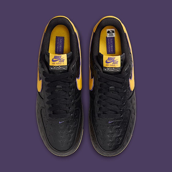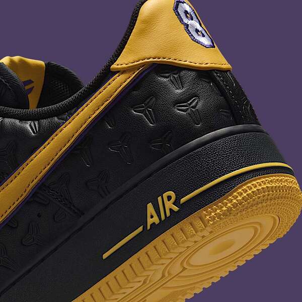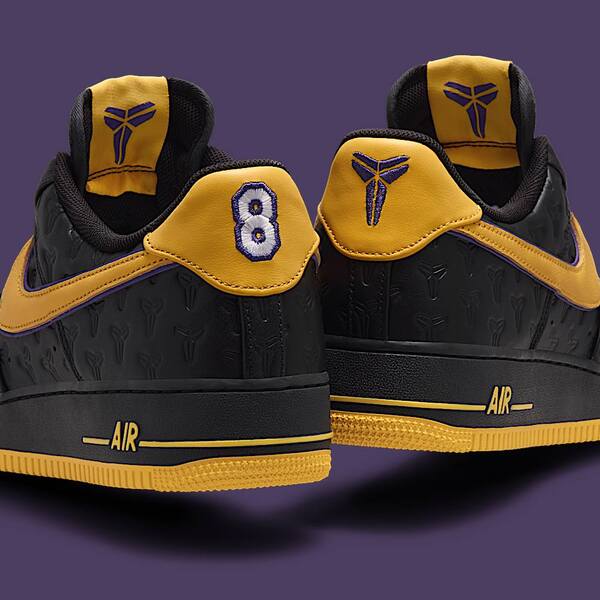 Nike stays true to Kobe's legacy and expands its range with the Kobe Bryant x Nike Air Force 1 Low ‘Black’. The sneaker combines the legendary silhouette of the Air Force 1 with colours and design elements inspired by the Lakers.