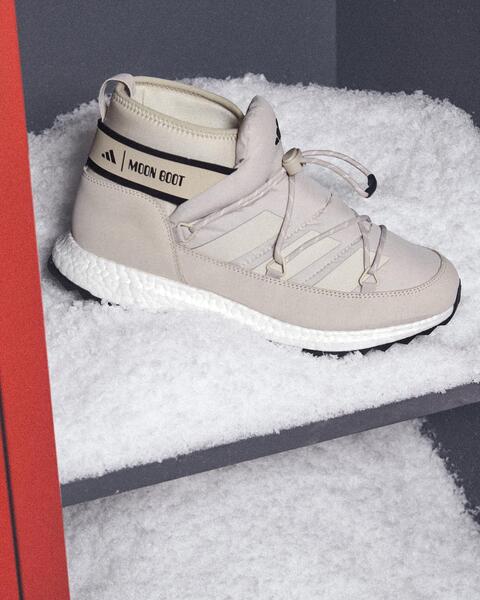 TLDR: adidas Sportswear and Moon Boot present their first joint collection, which combines the iconic après-ski style of Moon Boot with the sporty look of adidas. Launching globally on 7 November 2024 on adidas.com, the adidas app and in stores, the collection features stylish winter looks with innovative functionality - from waterproof snowboots with BOOST technology to oversized collegiate-style jackets.