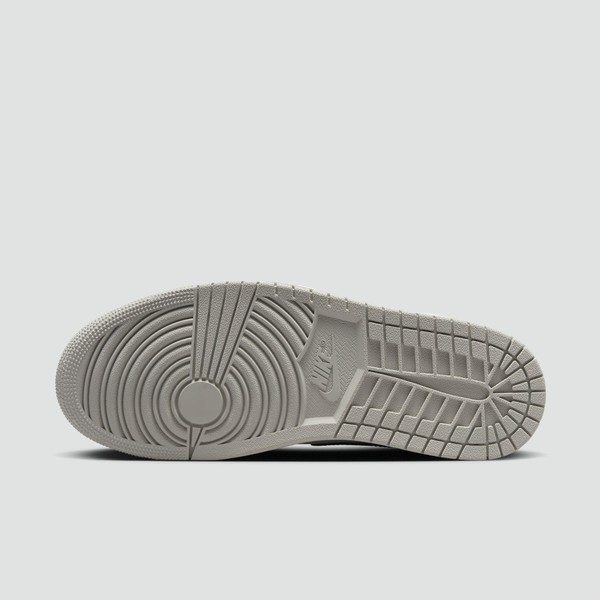 This style is rumoured to soon appear on the Air Jordan 1 High OG "White Cement". The AJ3-inspired pattern covers the sneaker in multiple shades of grey on the mudguard, overlays, and ankle tabs. The background stays clean with white leather. The adjacent toebox is also white, while the tongue is grey.