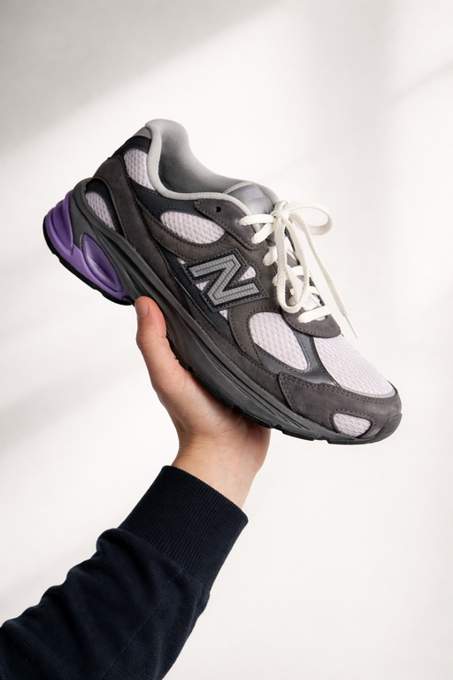 The 2010 draws on classic New Balance elements, but reinterprets them. The upper is made from diamond-knit mesh, combined with nubuck and synthetic overlays that add structure and depth. In the "Grey/Purple" colourway in particular, this creates an exciting contrast between cool grey tones and rich purple accents.