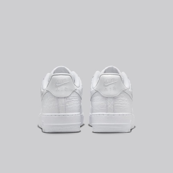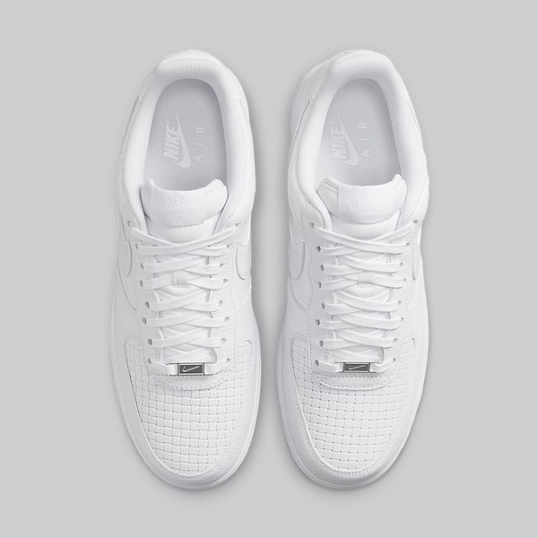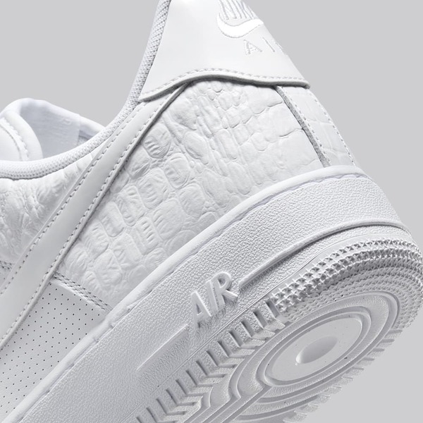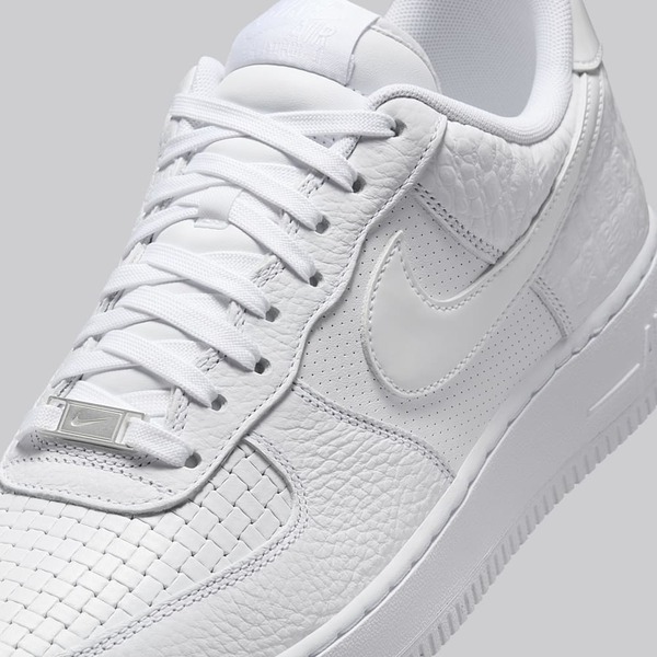 Details such as tumbled leather on the mudguard and exotic patterns on the heel provide an elevated feel. The woven leather of an early 2000s version adorns the toe box, while the patent leather Swoosh and heel tab add a glossy finish. A silver shoelace tubrae adds a touch of luxury to the otherwise all-white design.
