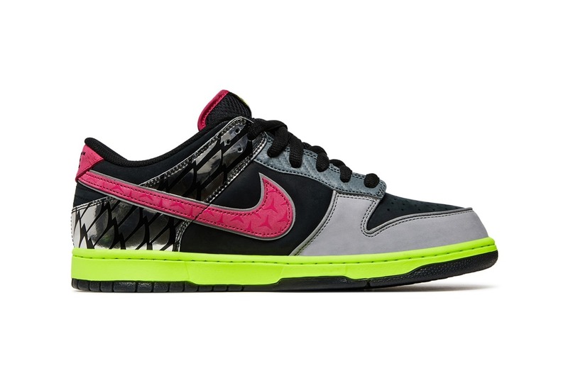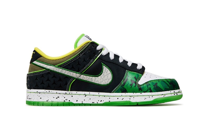 The Nike Dunk Low ‘What the Duck’ Pack is a collaboration between Division Street's Ducks of a Feather programme, GOAT and Flight Club and celebrates the University of Oregon's athletic heritage. The Dunk Low comes in two limited edition colourways, ‘Home’ and ‘Away’, both featuring vibrant elements of the university's uniforms from the past 25 years. The patchwork design combines bold green, yellow and metallic details with reflective accents and unique stitching.