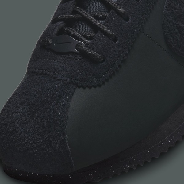 Nubuck and Shaggy Suede on the "Triple Black" Nike Cortez PRM