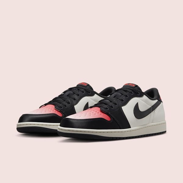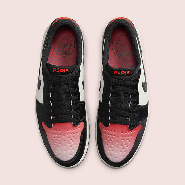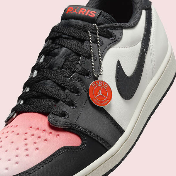 Jordan Brand and Paris Saint-Germain (PSG) continue their partnership with the latest Air Jordan 1 Low OG. This sneaker, part of the Fall 2024 collection, features a unique colourway in Sail, Off Noir, Infrared 23 and Pink Oxford. The design includes a Sail leather base with Off Noir overlays, embossed Swooshes and an eye-catching white-to-red colour gradient toebox. PSG branding appears on the tongue label and sockliner, and the shoe is completed with a Sail midsole and black rubber outsole.