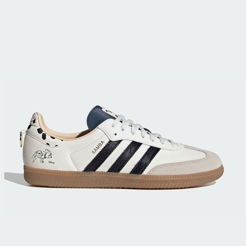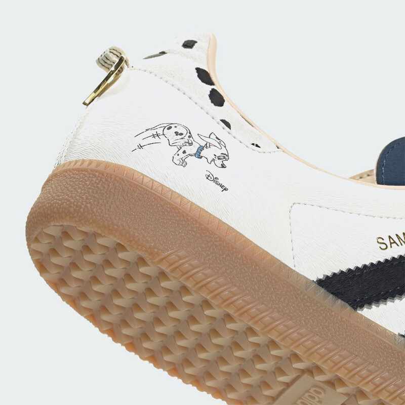 The 101 Dalmatians x adidas Samba "Penny" with the stylecode "KJ5990" and the official colorway "Cloud White/Core Black/Gold Metallic" is scheduled for release on: Coming Soon