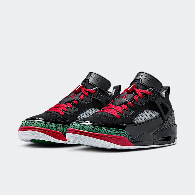 The Jordan Spizike Low "Black/Green" with the stylecode "FQ1759-060" and the official colorway "Black/Classic Green/White/Varsity Red" is scheduled for release on: 2025-03-21