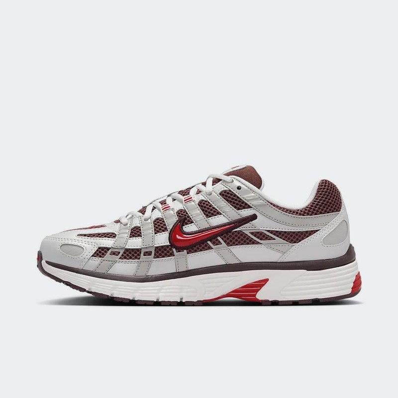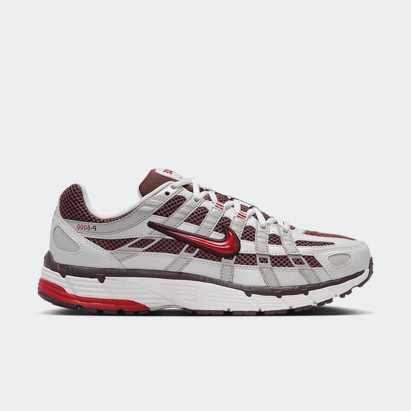 The Nike P-6000 "Fire Red" with the stylecode "HJ9598-100" and the official colorway "Metallic Summit White/Dark Pony/Light Iron Ore/Fire Red" is scheduled for release on: 2024-06-20