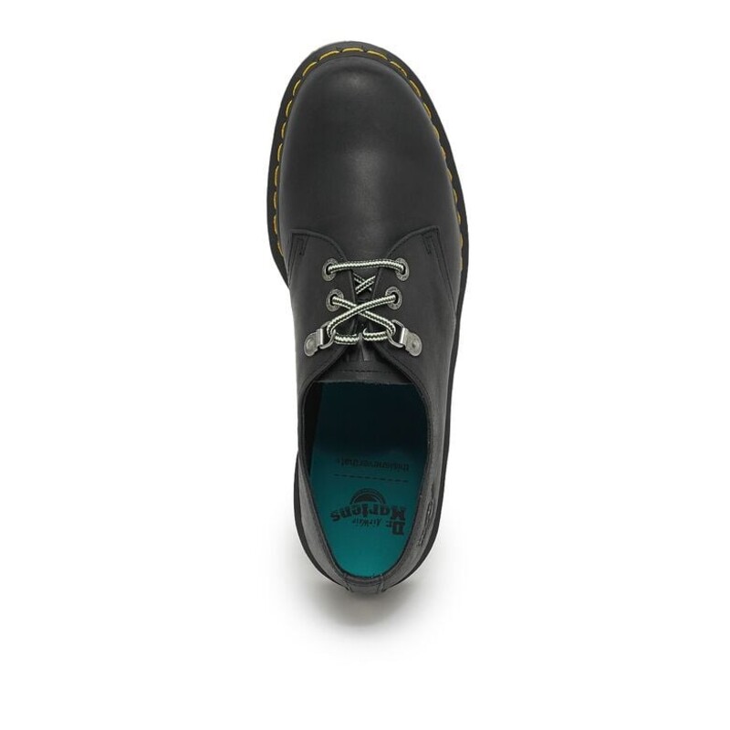 The 1460 boot is made from high-quality, waxed full-grain leather, which is known for its fine, oily texture, and finished with antique brass hardware. The result is a robust design. The 1461 Shoe follows the same material concept, but is characterised by silver hardware that gives it a modern and sophisticated touch.