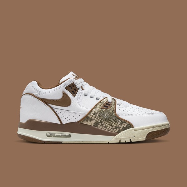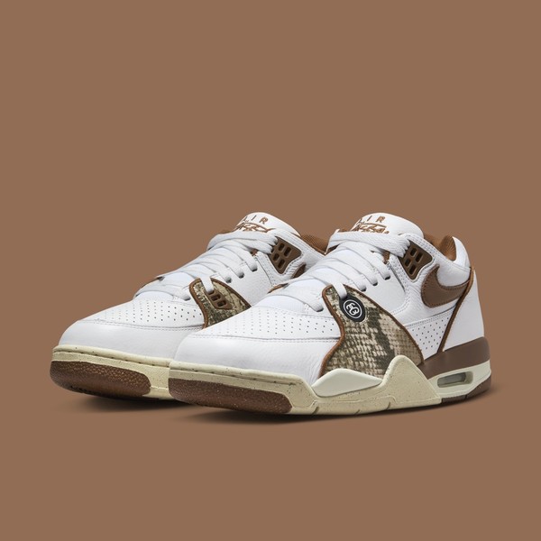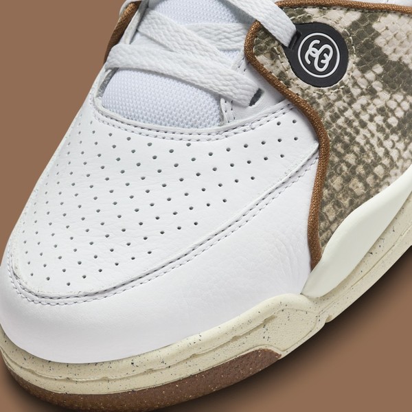 These shoes come in three eye-catching colours with snakeskin accents. The leather upper features perforations and snakeskin overlays for a unique look. Not to mention the mesh collar, Stüssy "SS" motifs and midfoot swooshes that make the Stüssy x Nike Air Flight 89 a real hit. To top it all off, you'll walk on two-tone Air Jordan 4 soles with visible Air units, while the sneakers come in a special box. Save the release date for the 2023 holiday season.
