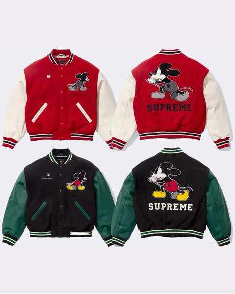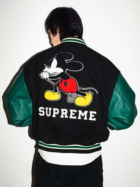 For autumn 2025, Supreme and Japanese label Number (N)ine are launching a joint collection – including a special Mickey Mouse touch. The capsule collection picks up on the characteristic grunge, rock and Americana style of Takahiro Miyashita's cult brand. It includes a varsity jacket, a long-sleeved raglan and a mesh 5-panel cap. The Supreme x Number (N)ine drop will be released on 16 October and on 18 October in Asia.