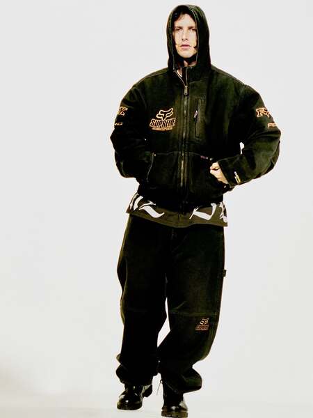 For the Autumn/Winter 2025 collection, Supreme and Fox Racing are joining forces once again to deliver a powerful blend of motorsport energy and streetwear aesthetics. The focus is on a tribute to the late rapper DMX: the ‘All Eyes on Fox’ racing jersey, a V1 helmet, a chest guard and bomber gloves – all in grey, red and black. The line-up is complemented by down jackets, hooded work jackets in denim or Cordura, wide jeans, knitted jumpers and graphic long-sleeved tops with motocross motifs. The collection is rounded off by sweatshirts, caps and beanies with striking co-branding. The collection will be released worldwide on 23 October and in Asia on 25 October.