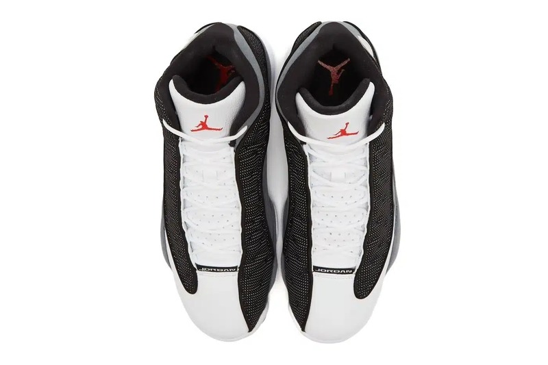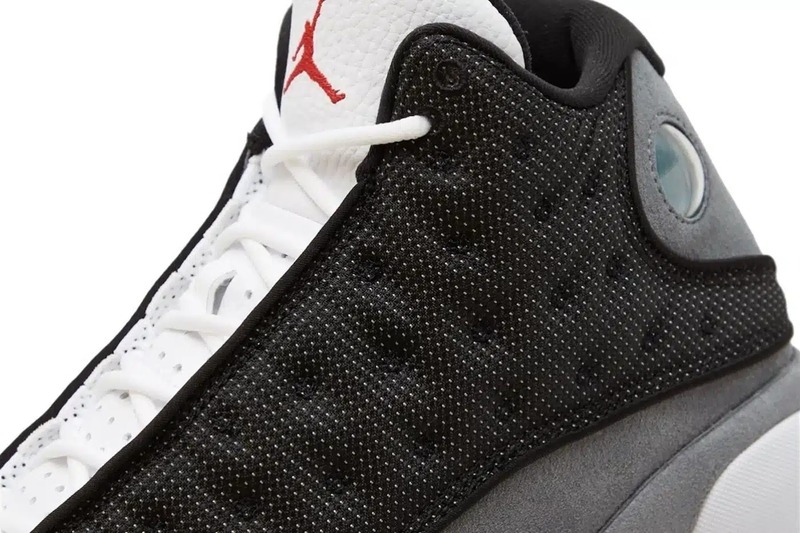 Flint grey accents bring depth to the all-black suede upper and heel, while the red Jumpman logo stands out on the leather tongue, insole, and underfoot. At the bottom, contrasting black and white soles round off the overall design of the Air Jordan 13 “Black Flint” perfectly.