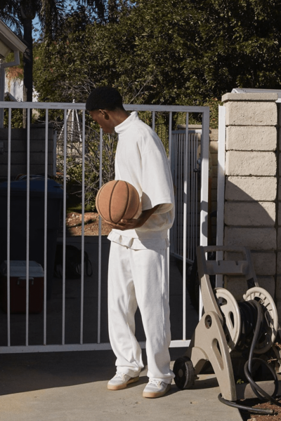 The multi-piece collection is made from premium materials in soft neutral tones, has an oversized fit, and includes garments such as sleeveless half-zip shirts, hoodies, sweatshirts, shorts, and track jackets, all discreetly embroidered with adidas Basketball branding. This collection is for people who don't think in conventions, who don't stick to the traditional way of representing basketball, but stay true to the spirit of the sport and represent it the way they want to.
